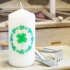 A fehér gyertya zöld négylevelű lóherével és háromlevelű lóhere koszorúval a szerencse és a pozitív energia szimbólumát hozza otthonába. Remek ajándék vagy kedves figyelmesség minden alkalomra.