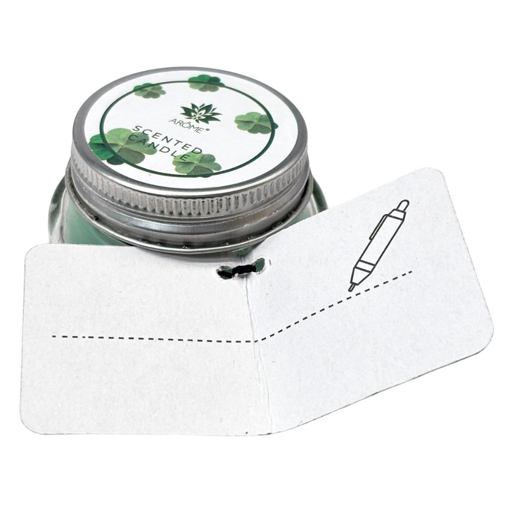 A gyertyákhoz tartozik egy kis papírkártya, amelyre személyes üzenetet vagy kívánságot írhatsz. Ezért is ideális a gyertya ajándéknak.