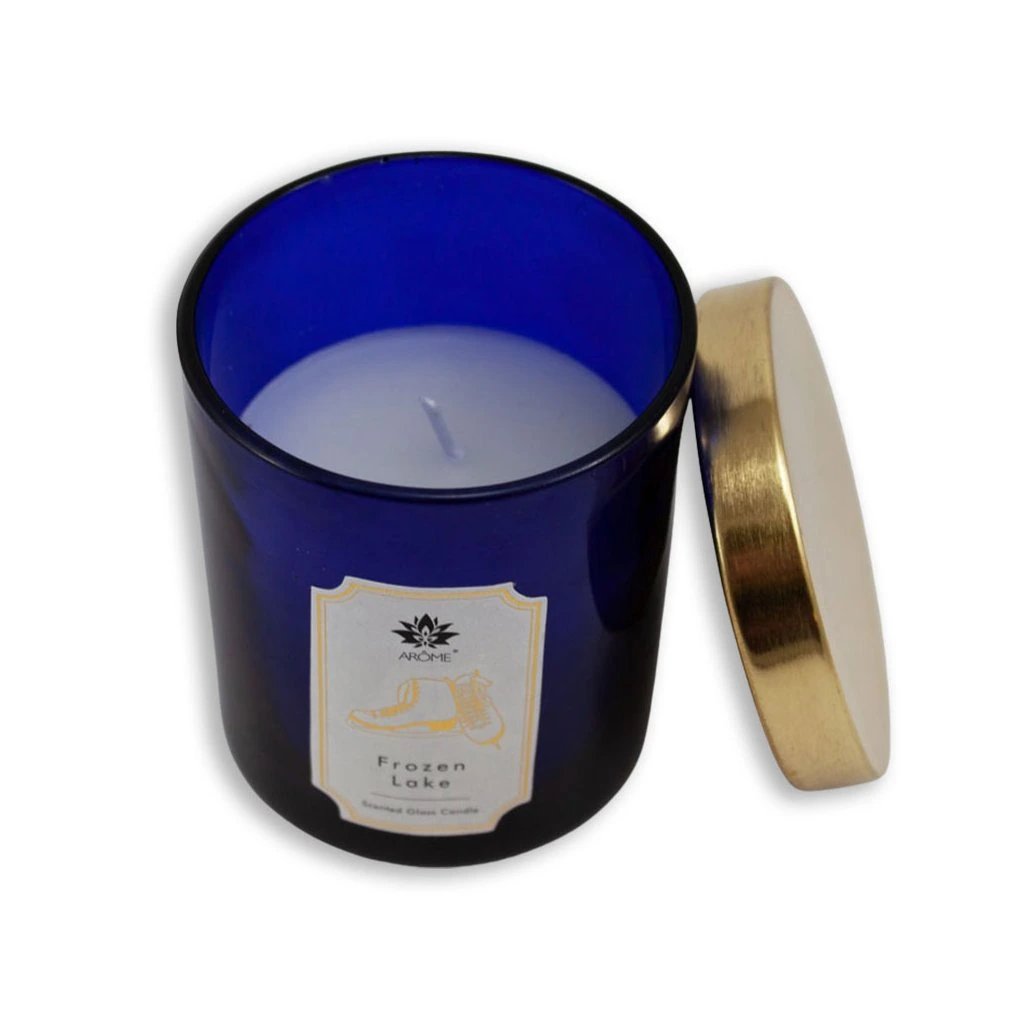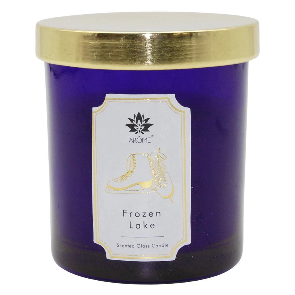 - 1 db karácsonyi illatgyertya Frozen Lake kék üvegben, kellemes, pihentető illattal. Súly: 125 g. Égési idő 23 óra.