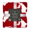 - Meleg mikroflanel takaró báránybéléssel. Piros, fehér jacquard mintás rénszarvasokkal, 150 x 200 cm.