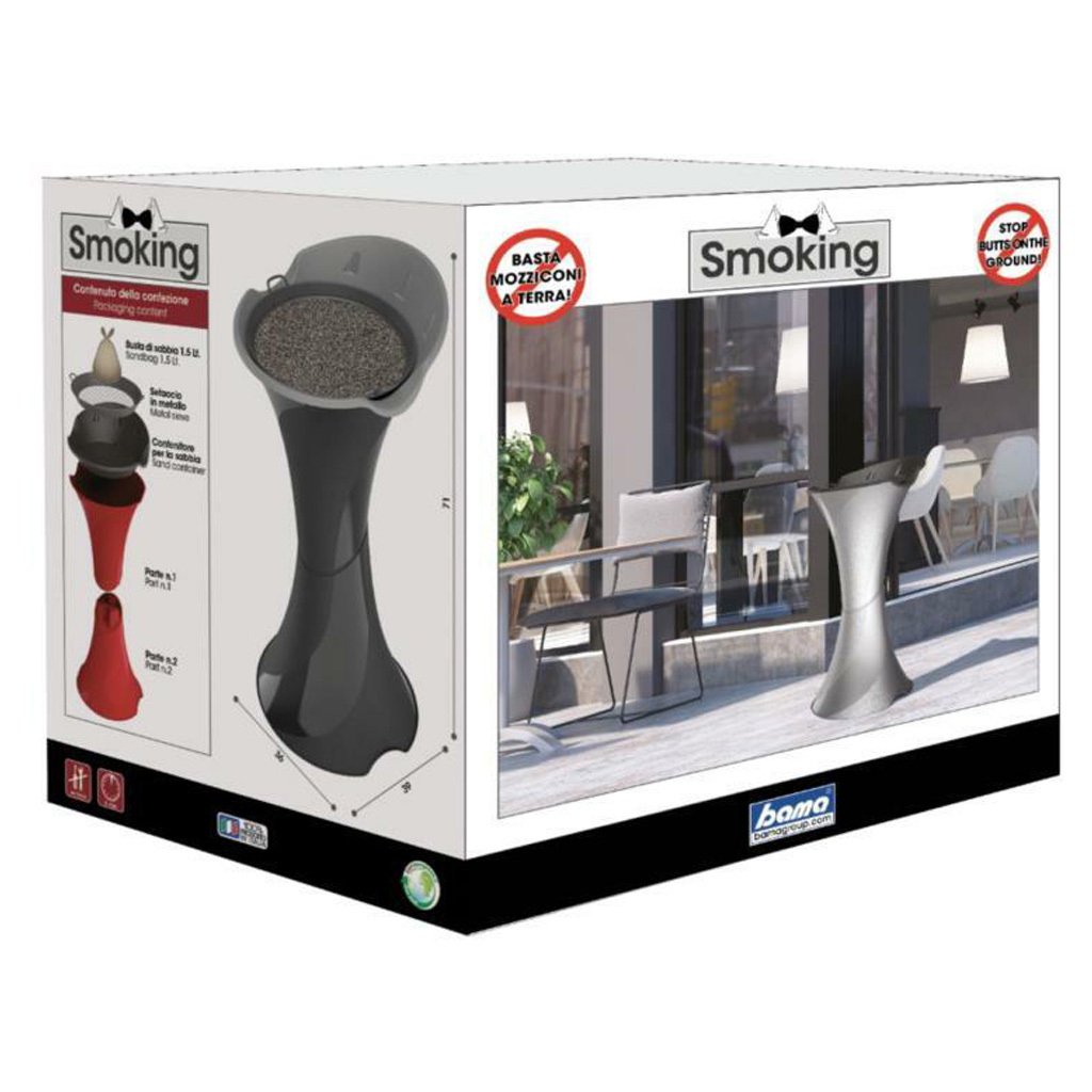 Az állvány nagyon jó minőségű műanyagból készült, így stabil és tartós. A homokkal ellátott funkcionális szita biztosítja a szükséges biztonságot, és egyszerűen és gyorsan tisztítható. Az elegáns és diszkrét stílusú hamutartó praktikus és vonzó kiegészítő is egyben.