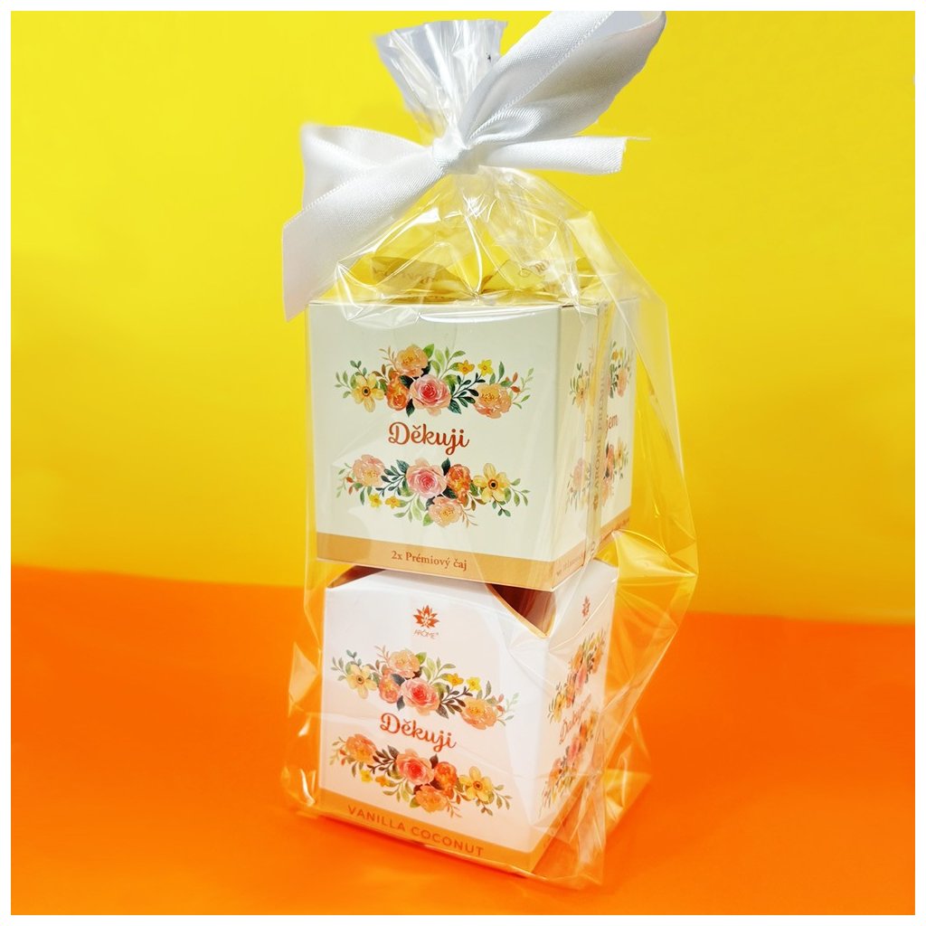 Ez az ajándékkészlet nagyszerű ötlet arra, hogy köszönetet mondj. Garantáltan örömet okoz, és időt takarít meg a csomagolással. A készlet finom zöld teát és gyertyát tartalmaz egy Köszönöm feliratú díszdobozban. Ráadásul minden ízlésesen be van csomagolva celofánba, és készen áll az ajándékozásra.