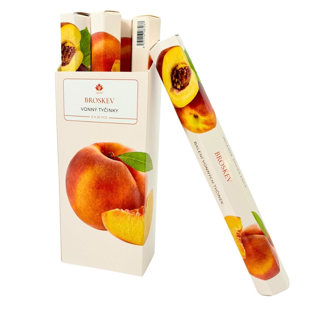 ARÔME illatosító pálcikák, 20 darab hatszögletű papírdobozban, barack illattal