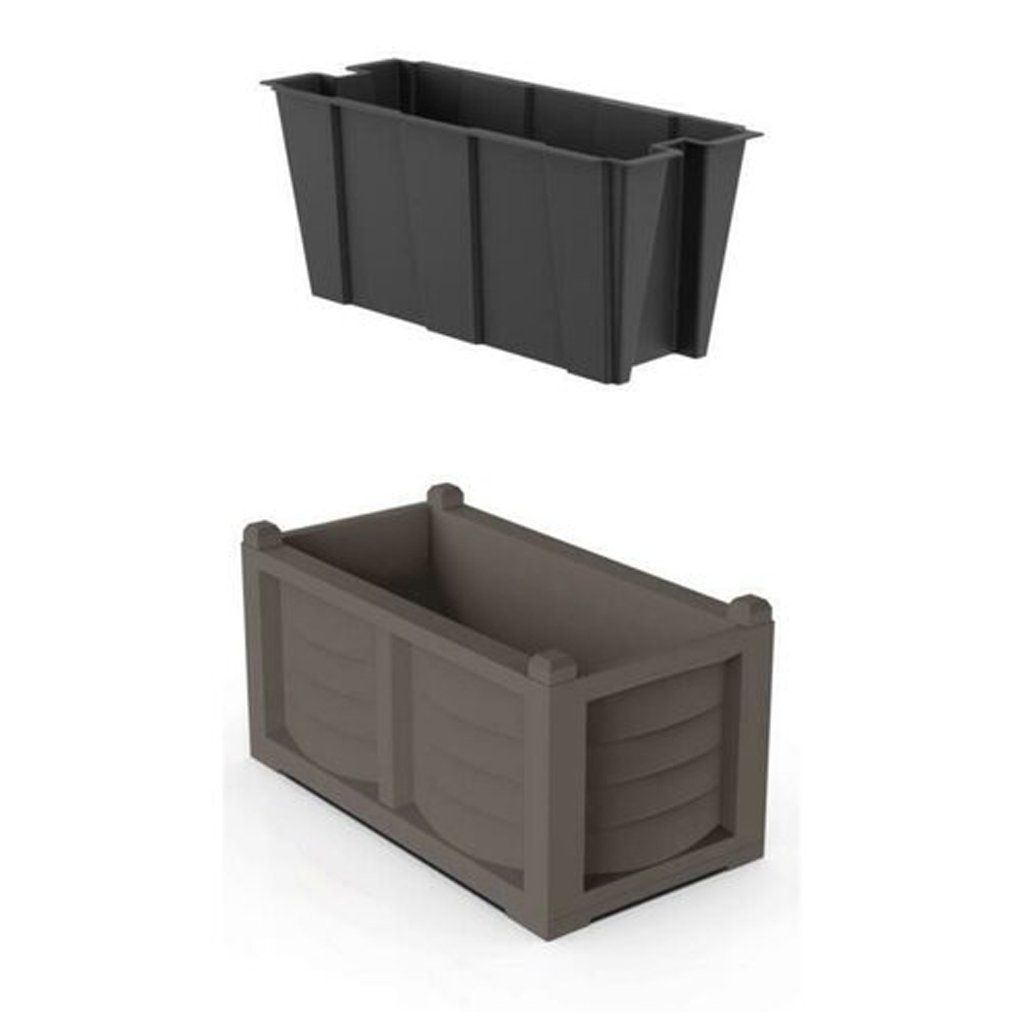 Virágokhoz és nagy növények termesztéséhez kültéri és beltéri terekben kínálunk egy nagyméretű virágláda készletet belső műanyag tartállyal. A virágláda elegáns, robusztus és könnyen összeszerelhető szerszámok nélkül. A kültéri virágláda felülete nagyon valósághű fa hatást kelt. A belső tartály a profilozott oldalsó fogantyúknak köszönhetően könnyen eltávolítható. Az olasz BAMA cég gyártja.