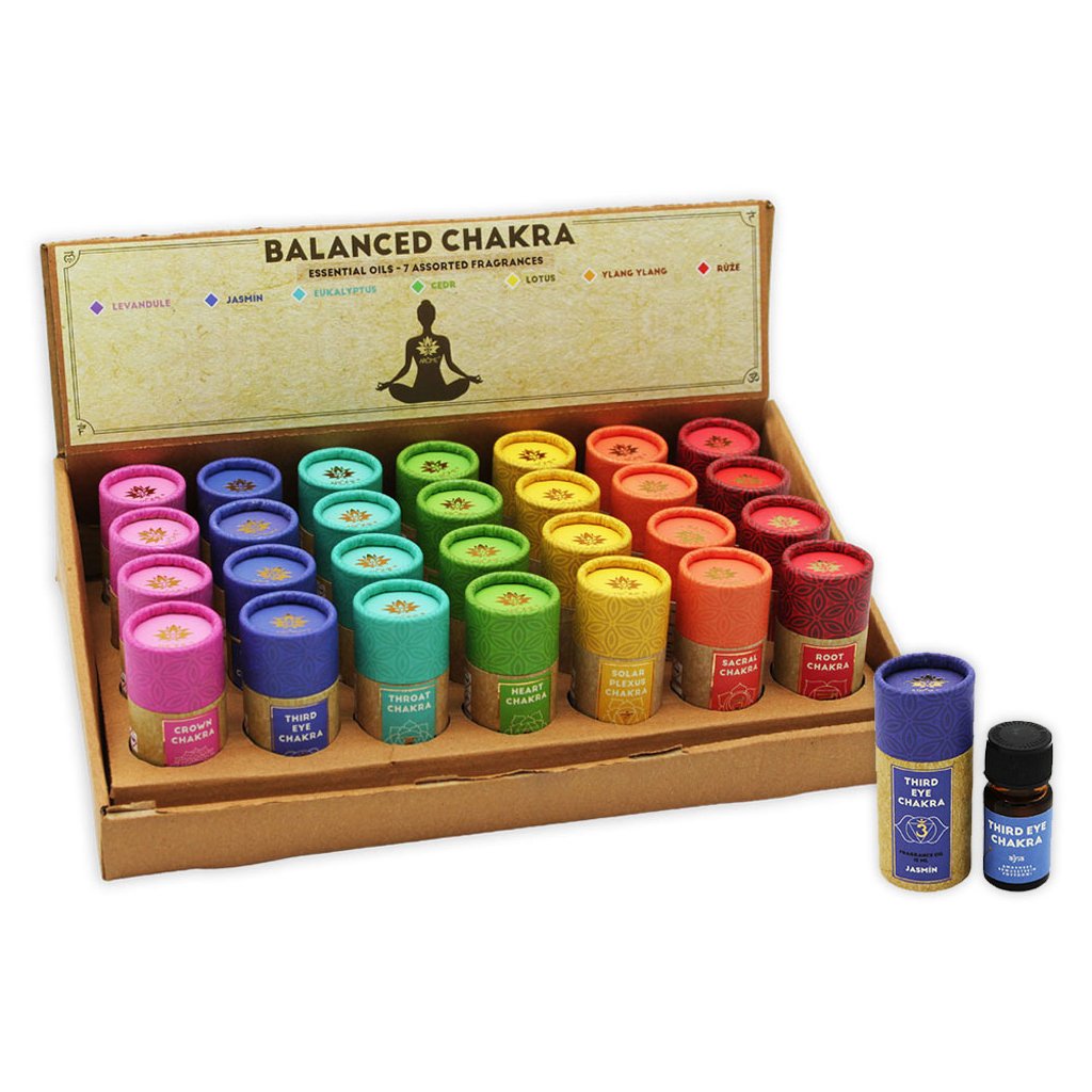 Balanced Chakra illóolaj display 7 illattal vegyesen, 28 db ARÔME