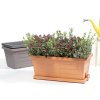 A virágláda alja profilozott, és pontosan illeszkedik a tálba, amely tágas és elegendő tartály az öntözővíz számára.