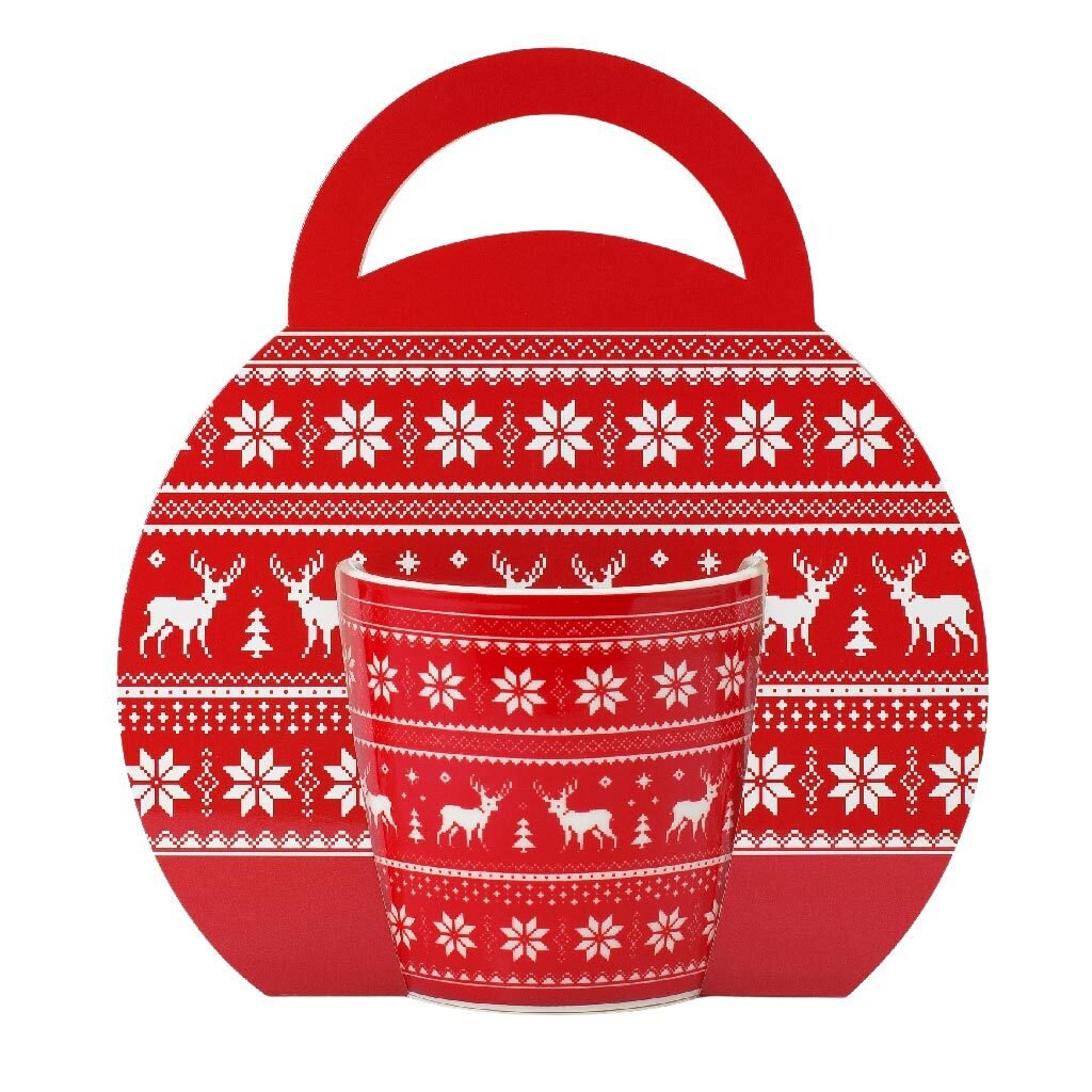 A bögre belsejében egy apró minta található, amely illeszkedik a külső dizájnhoz. A bögre egy karton ajándéktáskában található, füllel, amelyet ugyanolyan minta díszít – tökéletes ajándék a karácsony és a skandináv stílus szerelmeseinek.