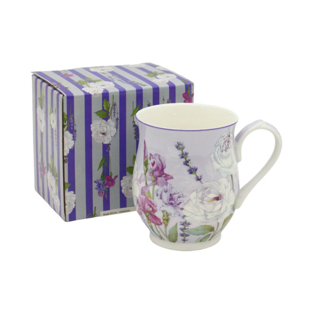 Nagyobb porcelán bögre teához, forralt borhoz, bécsi kávéhoz vagy forró csokoládéhoz. Gyönyörű, finom, romantikus virágmintázatával, levendulával és eredeti formájával tűnik ki. A csomag tartalmaz egy díszdobozos csomagolást.