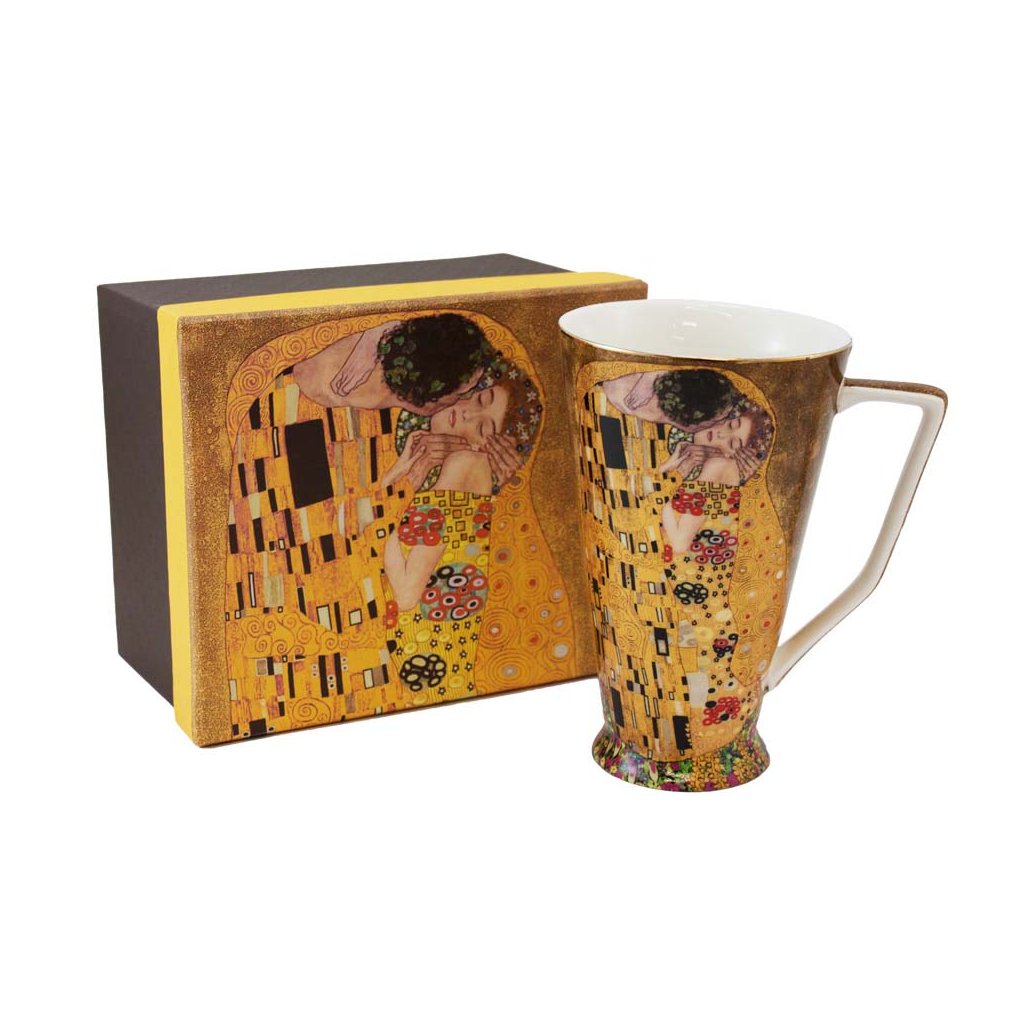 A nagyobb, 500 ml-es porcelánbögrét Gustav Klimt osztrák festő és grafikus híres alkotása díszíti. A bögre tökéletes teához, bécsi kávéhoz vagy forró csokoládéhoz.