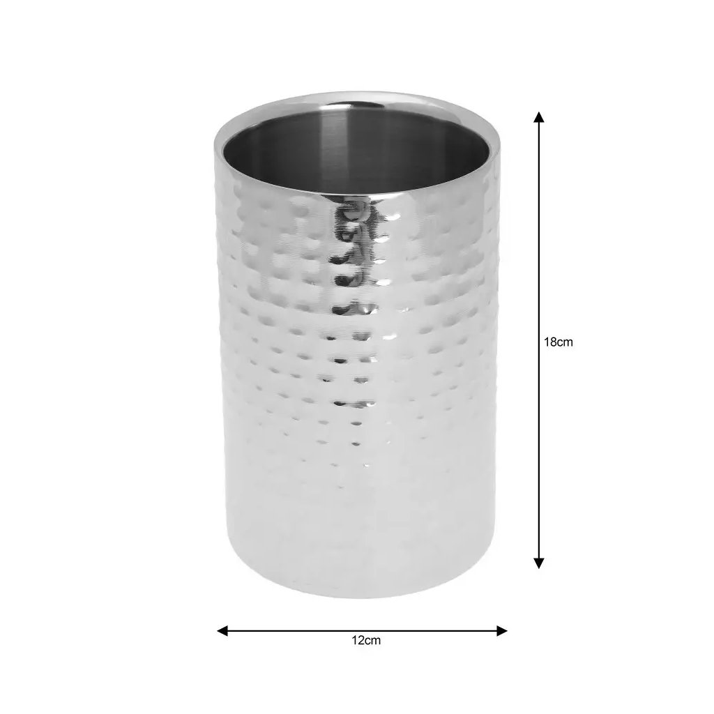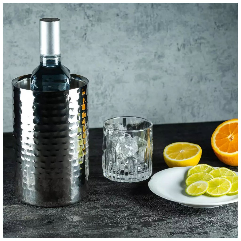 Elegáns borhűtő edény és egyéb italokhoz. Lehetővé teszi az alkohol hőmérsékletének hosszabb ideig tartását, és elegánsan mutat az asztalon egy buli alatt. Jégkockák nélküli használat. A dupla falak erősítik a hőszigetelő funkciót, amely hosszú ideig alacsonyan tartja a hőmérsékletet, így a bor ideális a fogyasztásra.