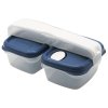 A szendvicskészlet két praktikus, leválasztható, 0,75 literes edényből és egy speciális evőeszköz-rekeszből áll és szalvétákból. Az egyes edények speciális légtelenítő szeleppel vannak ellátva. A fedél közepének megnyomásával és a szelep lezárásával jelentős mennyiségű levegő távozik, ami jobb élelmiszer-tárolást biztosít.