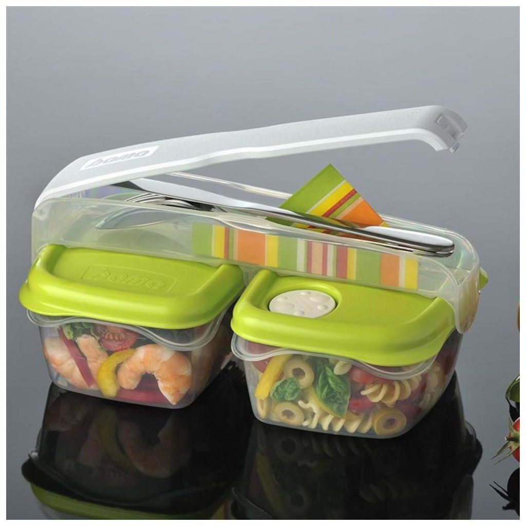 A szendvicskészlet két praktikus, leválasztható, 0,75 literes edényből és egy speciális evőeszköz-rekeszből áll és szalvétákból. Az egyes edények speciális légtelenítő szeleppel vannak ellátva. A fedél közepének megnyomásával és a szelep lezárásával jelentős mennyiségű levegő távozik, ami jobb élelmiszer-tárolást biztosít.