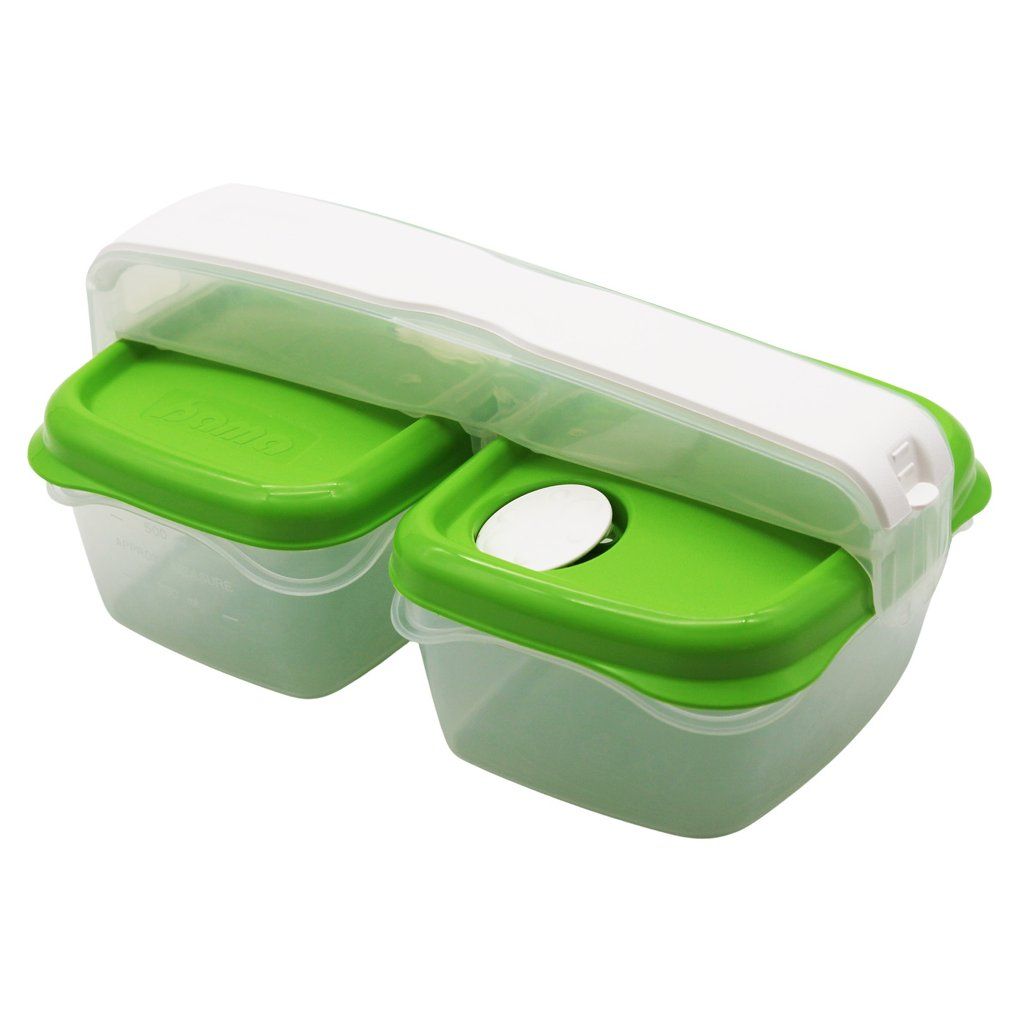 A szendvicskészlet két praktikus, leválasztható, 0,75 literes edényből és egy speciális evőeszköz-rekeszből áll és szalvétákból. Az egyes edények speciális légtelenítő szeleppel vannak ellátva. A fedél közepének megnyomásával és a szelep lezárásával jelentős mennyiségű levegő távozik, ami jobb élelmiszer-tárolást biztosít.