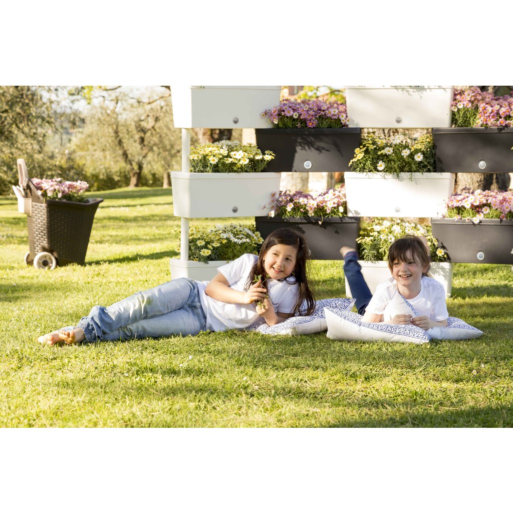 A virágládákat alkotjakülső és belső edény, amelyek könnyen egymásba csúsztathatók. Értékelni fogja a virágládáknál automatikus öntözőrendszer az összes virágláda közötti ötletes összekapcsolás révén. A víz mennyisége egyszerűen ellenőrizhető a vízszintjelzővel. Tanúsított és nem mérgező gyantákból készültek, amelyek ellenállnak a hőmérsékletváltozásoknak akár -20 °C-ig, a rázkódásnak, az ütéseknek és az UV sugárzásnak. 100%-ban újrahasznosítható anyag.