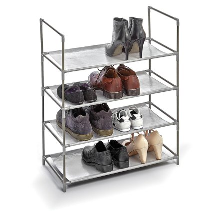 textil cipőtartó | Textil cipőtartó 4 polccal, ezüst színben 12 pár cipőhöz Méretek: 58 x 29 x 70 cm.