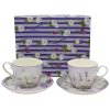 Elegáns, kiváló minőségű, vékony porcelán készlet finom, levendulás virágmintával. A készlet két porcelán csészéből és alátétből áll.