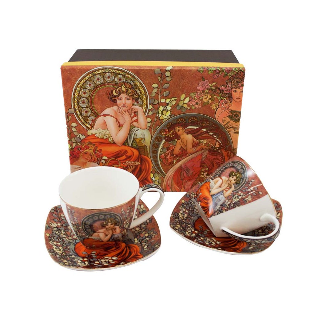 Az ünnepi asztalhoz vagy a délutáni összejövetelhez az Alfons Mucha műhelyéből származó dekorral díszített gyönyörű bögre az igazi. Tökéletes ajándék barátoknak, kollégáknak vagy szeretteinek is. A készlet díszdobozba van csomagolva. Ha valakinek ajándékozná, nem kell a szép csomagolással bajlódnia. Csak díszítse a dobozt egy masnival, vagy tegye ajándéktasakba.