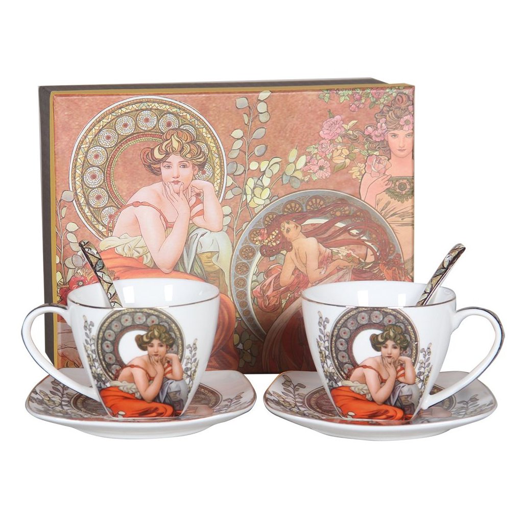 Az ünnepi asztalhoz vagy a délutáni összejövetelhez az Alfons Mucha műhelyéből származó dekorral díszített gyönyörű bögre az igazi. Tökéletes ajándék barátoknak, kollégáknak vagy szeretteinek is. A készlet díszdobozba van csomagolva. Ha valakinek ajándékozná, nem kell a szép csomagolással bajlódnia. Csak díszítse a dobozt egy masnival, vagy tegye ajándéktasakba.