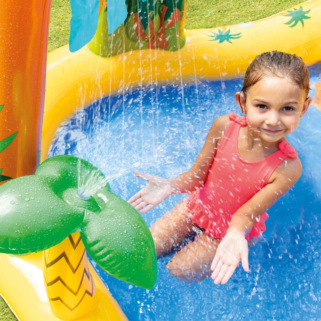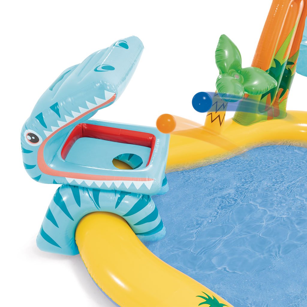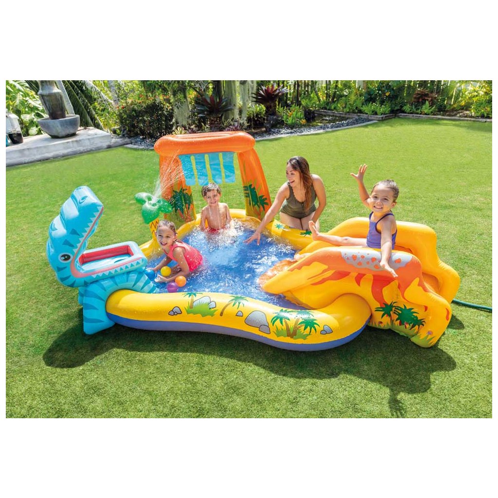 Az INTEX Dinosaur felfújható gyermek központtal melalakíthatja kertjét egy vízi királysággá gyermekei számára. Barátaikkal együtt egész nyáron rengeteg szórakozást élvezhetnek benne.