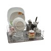 Az edényszárító krómozott acélból készült, rozsdamentes acél tálcával és rozsdamentes acél evőeszköztartóval van ellátva.