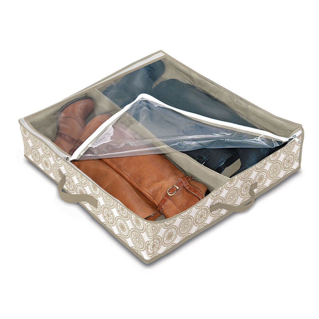 Szezonon kívüli cipőket kell tárolnia? Ez a nagyszerű tároló két pár csizmához megkönnyíti a dolgát. MMindenkinek meglesz a saját helye, és ráadásul védve lesz a portól. A textil tároló átlátszó fedéllel van ellátva, amely cipzárral szorosan zárható.