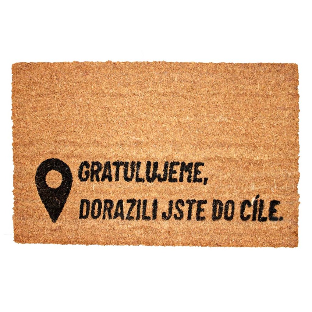 Eredeti szöveggel ellátott lábtörlő: "Megérkeztél a célba", amely mosolyt csal a látogatók arcára. Az ajtó előtti lábtörlő praktikus, szükséges és hozzájárul otthona tisztaságának megőrzéséhez.