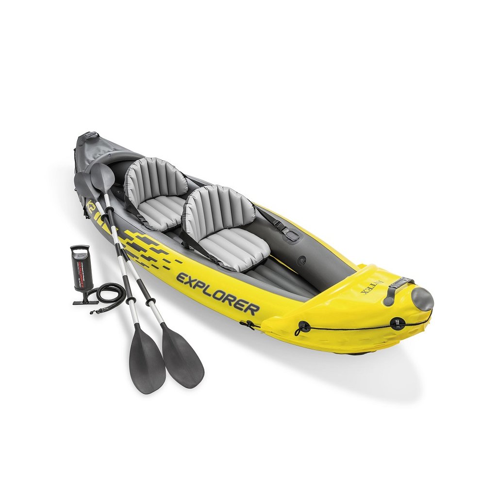 Kétüléses, tartós, felfújható INTEX kajak, nagy láthatósággal. A felfújható Explorer K2 kajak szabadidős evezésre készült tavakon, tavakon és enyhe folyókon. A kajak aerodinamikus formájú a könnyű evezés érdekében. A kajak pilótafülkéje a maximális kényelemre és a bőséges helyre lett tervezve.
