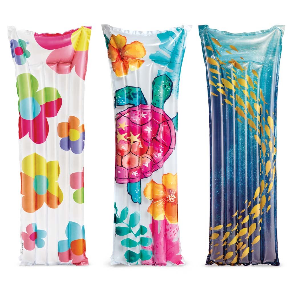 INTEX felfújható matrac 183 x 69 cm-es méretben, gyönyörű mintával és beépített párnával. Ez a modell két légkamrával rendelkezik. A csomag tartalmaz egy javítókészletet is kisebb sérülésekhez.
