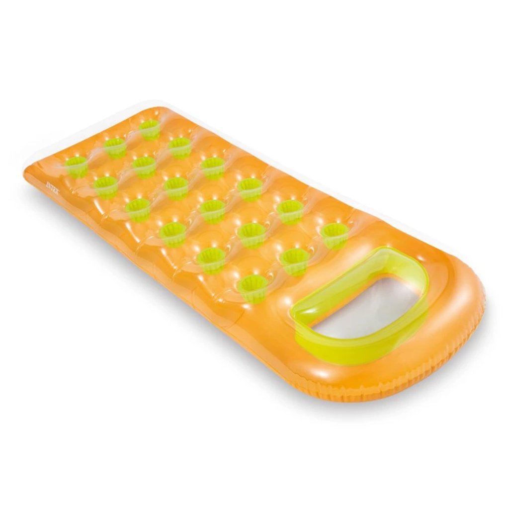 Narancssárga INTEX felfújható matrac ablakkal és beépített átlátszó párnával a kényelemért. A matrac felső részén található betekintőablaknak köszönhetően kényelmesen megfigyelhető a víz alatti világ.