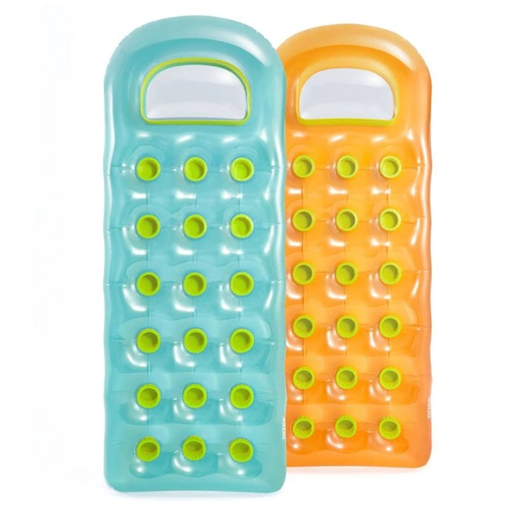 Narancssárga INTEX felfújható matrac ablakkal és beépített átlátszó párnával a kényelemért. A matrac felső részén található betekintőablaknak köszönhetően kényelmesen megfigyelhető a víz alatti világ.