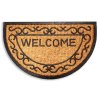 A félkör alakú, kókuszrostból készült, Welcome feliratú lábtörlő jól illeszkedik a bejárati ajtó elé, és cipőtisztításra ösztönzi az érkezőket. A teraszon vagy az erkélyen is jól használható. Az alsó gumírozott oldal a padlóhoz rögzíti a lábtörlőt.