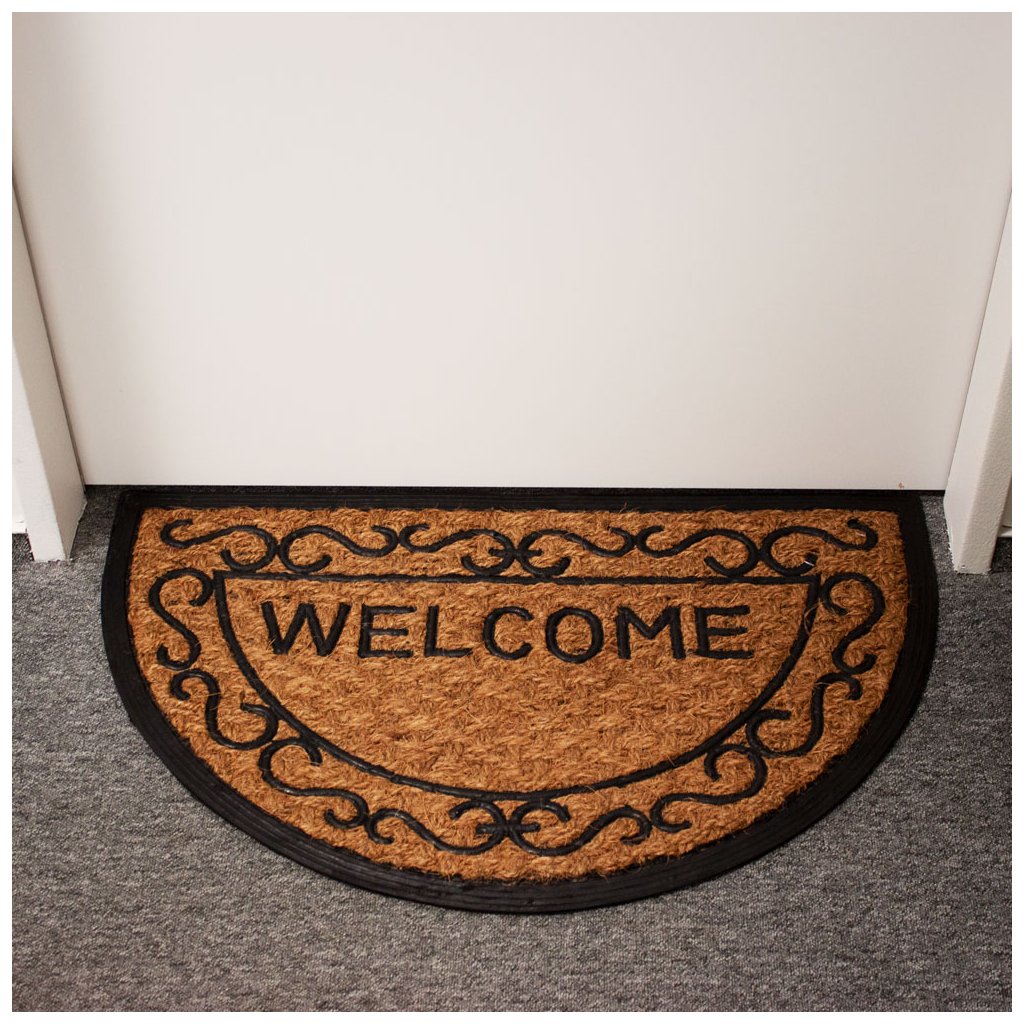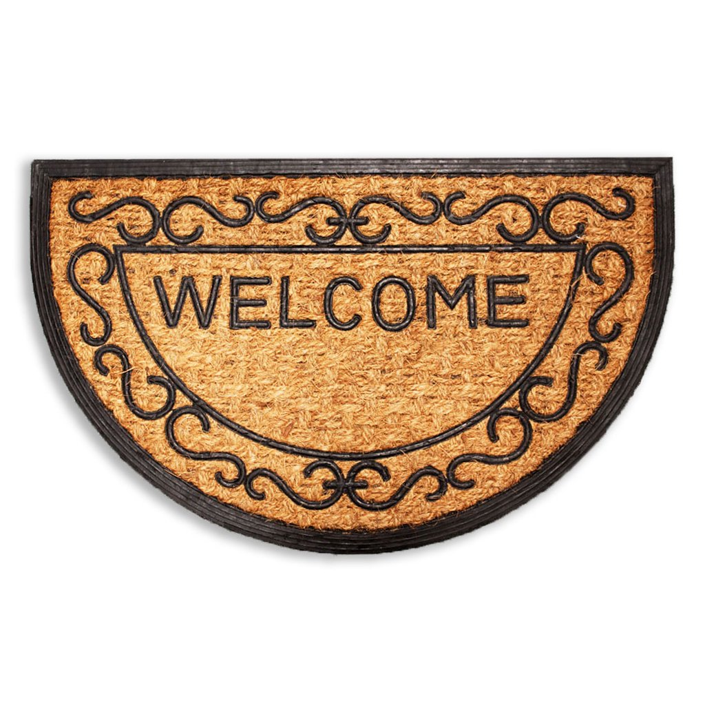 A félkör alakú, kókuszrostból készült, Welcome feliratú lábtörlő jól illeszkedik a bejárati ajtó elé, és cipőtisztításra ösztönzi az érkezőket. A teraszon vagy az erkélyen is jól használható. Az alsó gumírozott oldal a padlóhoz rögzíti a lábtörlőt.