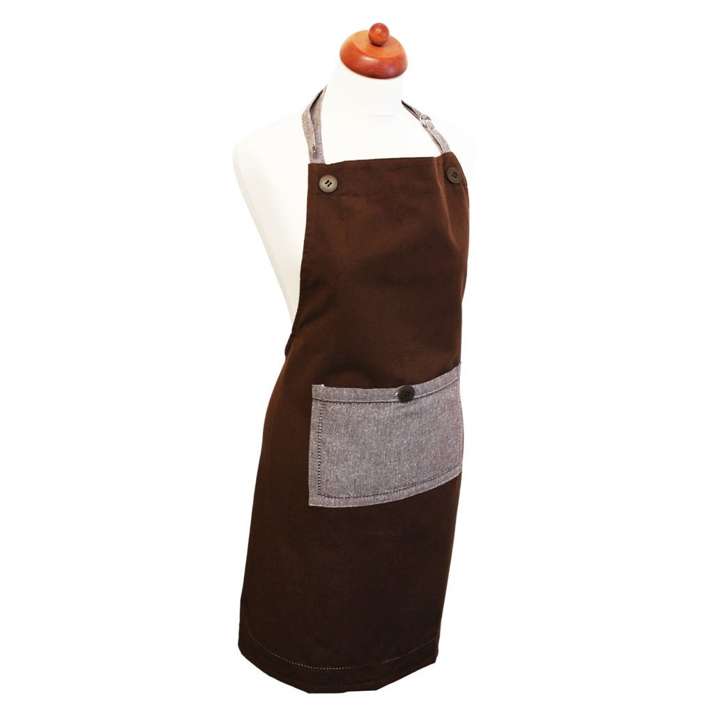 Konyhai kötény újrahasznosított pamutból – sötétbarna zsebbel