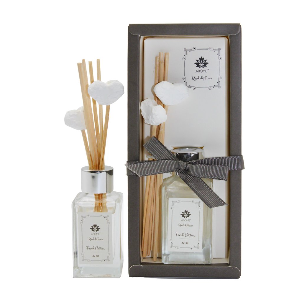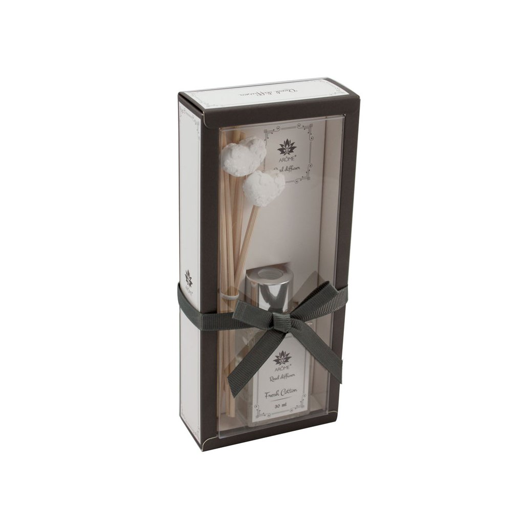 A friss pamut érdekes illatát a Fresh Cotton illatpálcás diffúzor biztosítja Önnek. Az illat fokozatosan szabadul fel, és felfrissíti lakását vagy irodáját. Minden egy diszkrét színű, szürke masnival ellátott díszdobozba van csomagolva. A párologtató pálcika nagyszerű tipp karácsonyi ajándéknak. A legigényesebbeknek is örömet okoz.