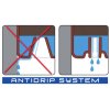 - Csepegésgátló rendszer – a vízcseppek függőlegesen folynak lefelé, nem hagynak nyomot a falon