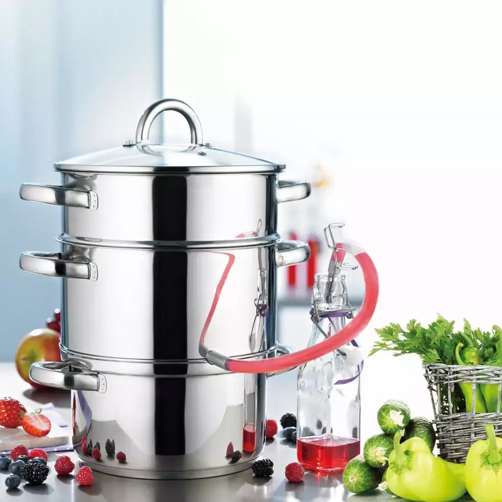 Készítsen otthon saját pasztőrözött gyümölcs- és zöldségleveket vegyszerek és tartósítószerek nélkül. Ez a robusztus, rozsdamentes acél gyümölcscentrifuga ideális mindenkinek, aki fel szeretné dolgozni a kertből származó termést, vagy egyszerűen csak egész évben élvezni szeretné a házi levek ízét.