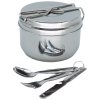 Hatrészből álló kemping étkészlet kisebb és nagyobb kirándulásokhoz. Praktikus készlet hagyományos, minőségi rozsdamentes acélból készült éthordó evőeszközökkel.