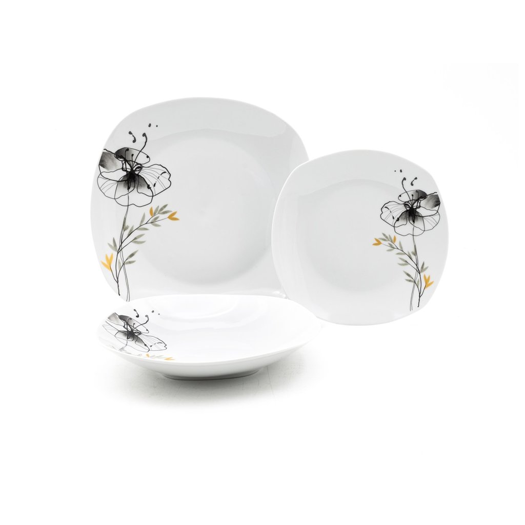 HOME ELEMENTS Porcelán tányérkészlet, 18 darabos, Fekete mák Home Elements