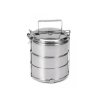 A háromrészes, rozsdamentes acélból készült ételhordó az ételek kényelmes szállítására szolgál. A következőkből áll: 3 tál és fedő, melyeket egy praktikus csattal ellátott fogantyú köt össze.