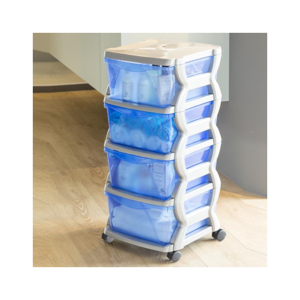 A 4 fiókban rengeteg olyan dolog elfér, amire szüksége van, és könnyen áthelyezheti őket oda, ahol éppen dolgozik. A gurulós polc kerekekkel van felszerelve.
