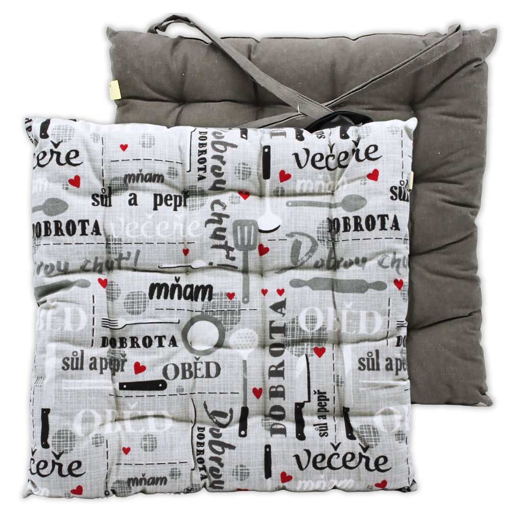 Tegye kellemesebbé az ülést a Home Elements steppelt ülőpárnájával. A konyhai motívumokkal és a "Jó étvágyat!" felirattal ellátott design hangulatos és stílusos jelleget kölcsönöz a belső térnek.
