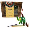 Ajándékdoboz füstölők és tömjének Karma az ARÔME kollekcióból válogatást tartalmaz 4 féle illatú füstölőt és 2 féle illatú tömjént tartalmaz. A csomag tartalmaz egy elefánt formájú tartót is.