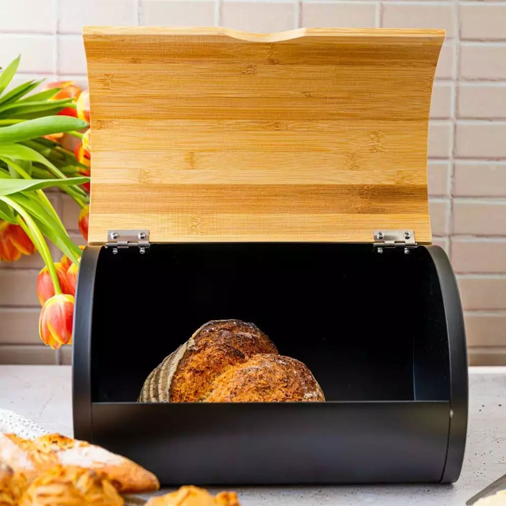 A stílusos és praktikus Klausberg KB-7711 kenyértartó ideális választás minden modern konyhába. A matt fekete fém test és a természetes bambusz fedél kombinációja elegáns megjelenést kölcsönöz, miközben optimális feltételeket biztosít a pékáruk tárolásához.
