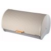 Kenyérdoboz nemesacélból, ezüst színben. Bézs színű, zománcozott fedéllel. Mindenféle kenyér tárolására alkalmas: kenyér, zsemle, bagett és még muffin is. A visszahúzható fedél simán nyílik és záródik, nyitáskor nem igényel további helyet.