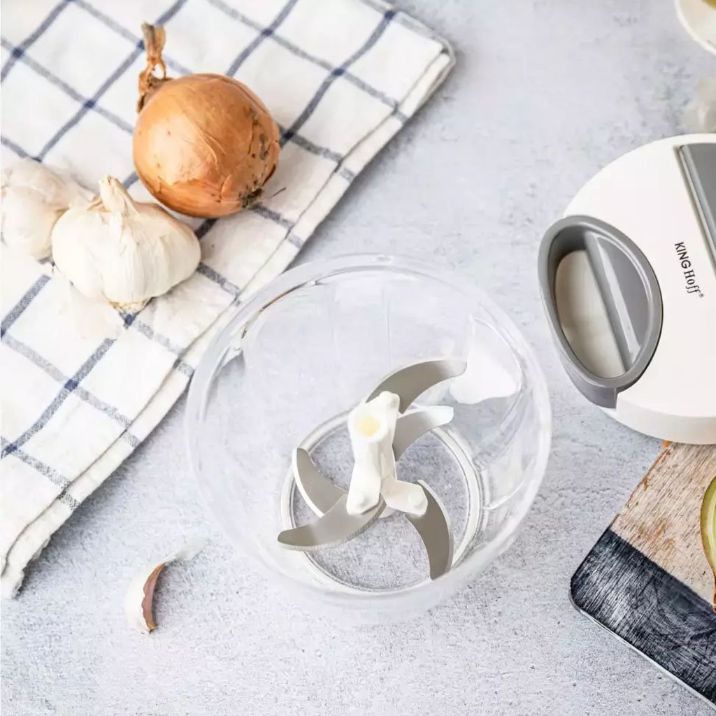 - Éles rozsdamentes acél pengék – gyors, hatékony és egyenletes aprítás.