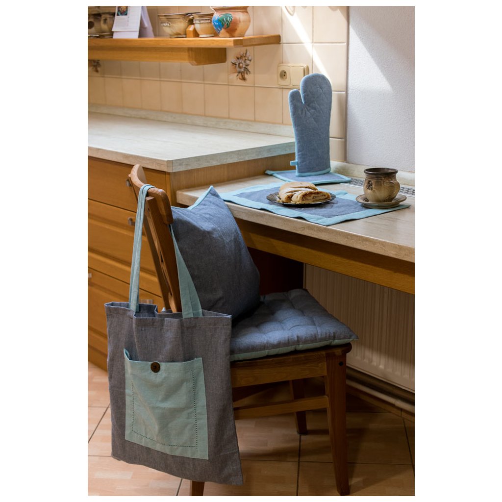 Szeretné támogatni a környezet védelmét? Válasszon egy praktikus kesztyűt újrahasznosított pamutból. Nélkülözhetetlen segítőtárs minden konyhában, amelyet a mágnesnek és a huroknak köszönhetően könnyen felakaszthat, és mindig kéznél lesz. A világos és sötétkék színek elegáns kombinációja minden modern konyhába illik.