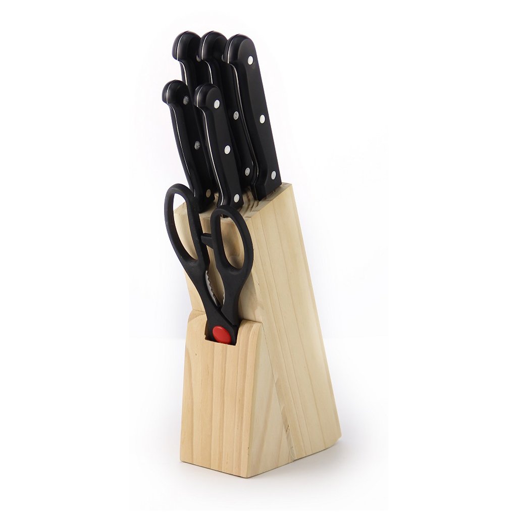 Alap konyhai késkészlet fa blokkban. 7 részes készlet.