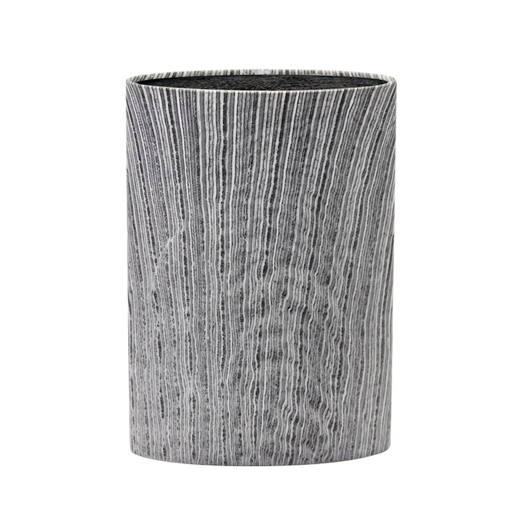 Fa mintázatú, állvánnyal ellátott, dizájnos konyhakés készlet. 6 részes készlet. Szürke szín.