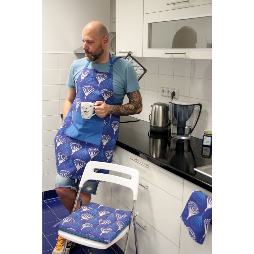 A kötény funkcionális zsebbel, univerzális mérettel, derék- és nyakkötővel rendelkezik. Más hasonló konyhai textíliákkal kombinálható. A konyhában mindent azonos színekben és azonos motívumokkal tarthat.