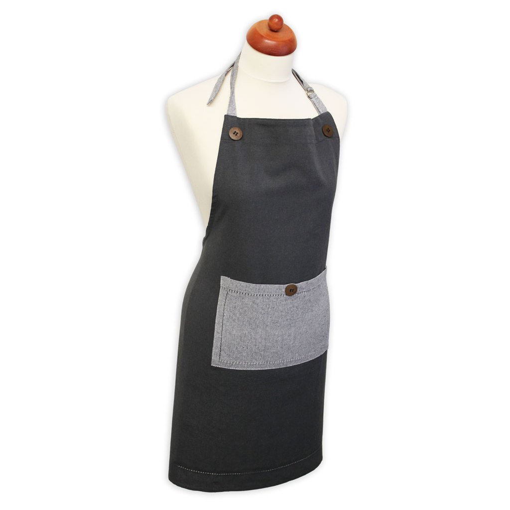 Konyhai kötény újrahasznosított pamutból – sötétszürke zsebbel